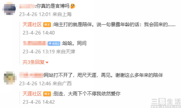 但在网友们悼念天涯的时候,官方则表示,“我还能抢救一下”。即便在网站与APP均已无法打开的时候,天涯社区的官微依然活跃,并针对网友们的疑问也给出了回应,“咱主打的就是陪伴。说一句暴露年龄的话:我会回来的……”,以及“别走,大雨下个不停我依然爱你”。此外在早些时候,天涯官微还曾发布了近期将进行技术升级和数据重构的公告。