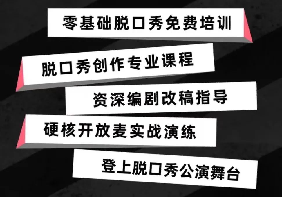 市场爆发式增长后,脱口秀行业也出现人才短缺问题。笑果文化、单立人等头部厂牌都很注重演员培养。通常的孵化路径是:俱乐部研发专业课程,以训练营的形式吸收学员,为其提供培训和指导、开放麦实战演练,推送优秀学员参与公演。据硬糖君了解,这些培训课程基本免费,每期招生名额也有限。