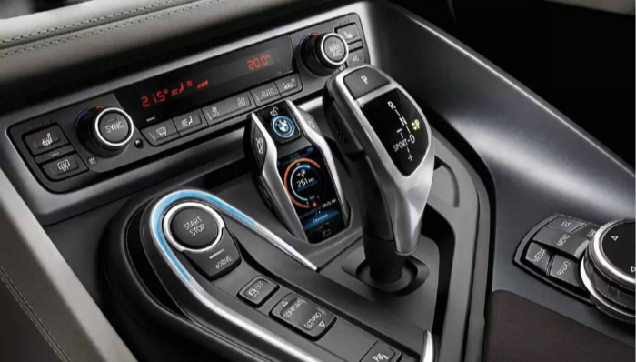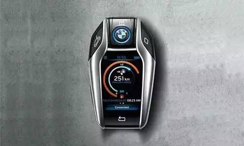 不仅车很豪,钥匙也豪。宝马i8的钥匙,智能密钥卡,它具有高清晰度的LCD显示屏可以显示剩电量剩油量,还有继续行驶的里程等,能够使车主远程设定车内的温度。