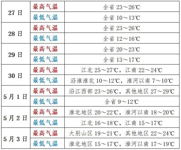 安徽省“五一”期间具体天气预报