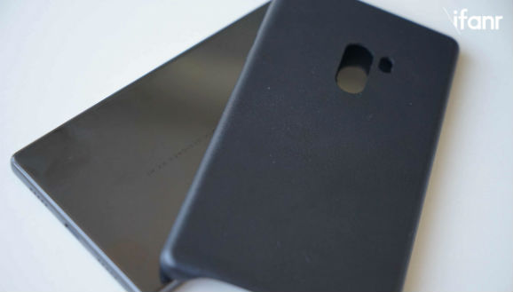 不过,躲过了易刮花问题的陶瓷材质还是躲不过容易成为指纹收集器的问题。另外,在整机宽大的机身尺寸下,单独握着手机还是比较容易滑落的。好在随机附赠了一个纯皮的机身保护壳,质感柔软,能提升不少手感且不会影响正面无边框观感。在正面高颜值的前提下,似乎盖住背面高亮的陶瓷背板也不觉得可惜了。