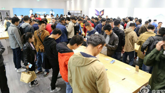 在摆上了小米 MIX 样机之后,不少消费者也十分好奇地走进线下的小米之家体验真机。这个周末的五彩城小米之家,拥挤程度不亚于 iPhone 7 开售时的苹果店。