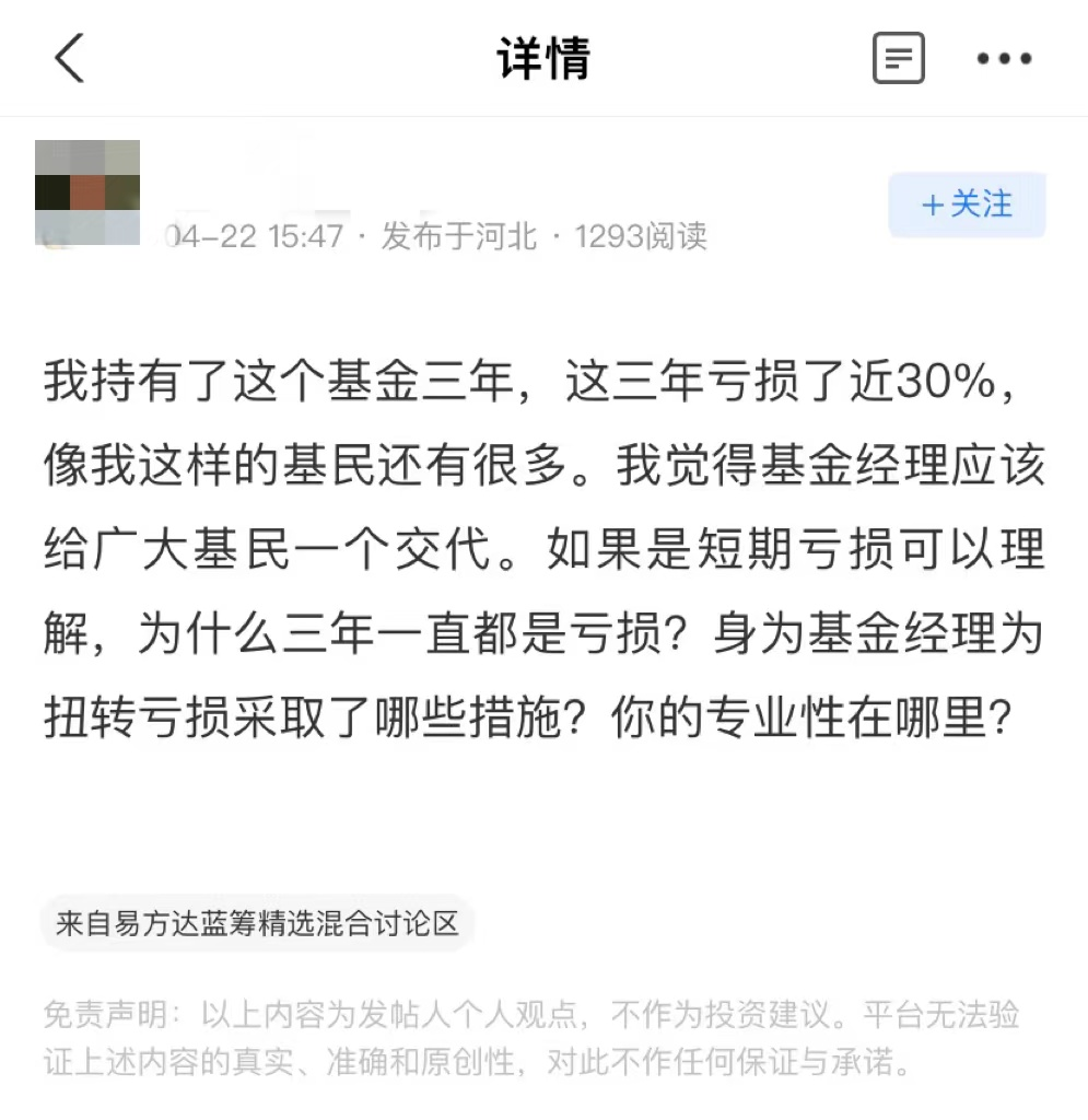 虽然一季度报告发布后,张坤重回“公募一哥”宝座,但网上一些基民表示,这三年亏损了近30%,基金经理应该给广大基民一个交代,如果是短期亏损应该理解,为什么三年一直都是亏损?