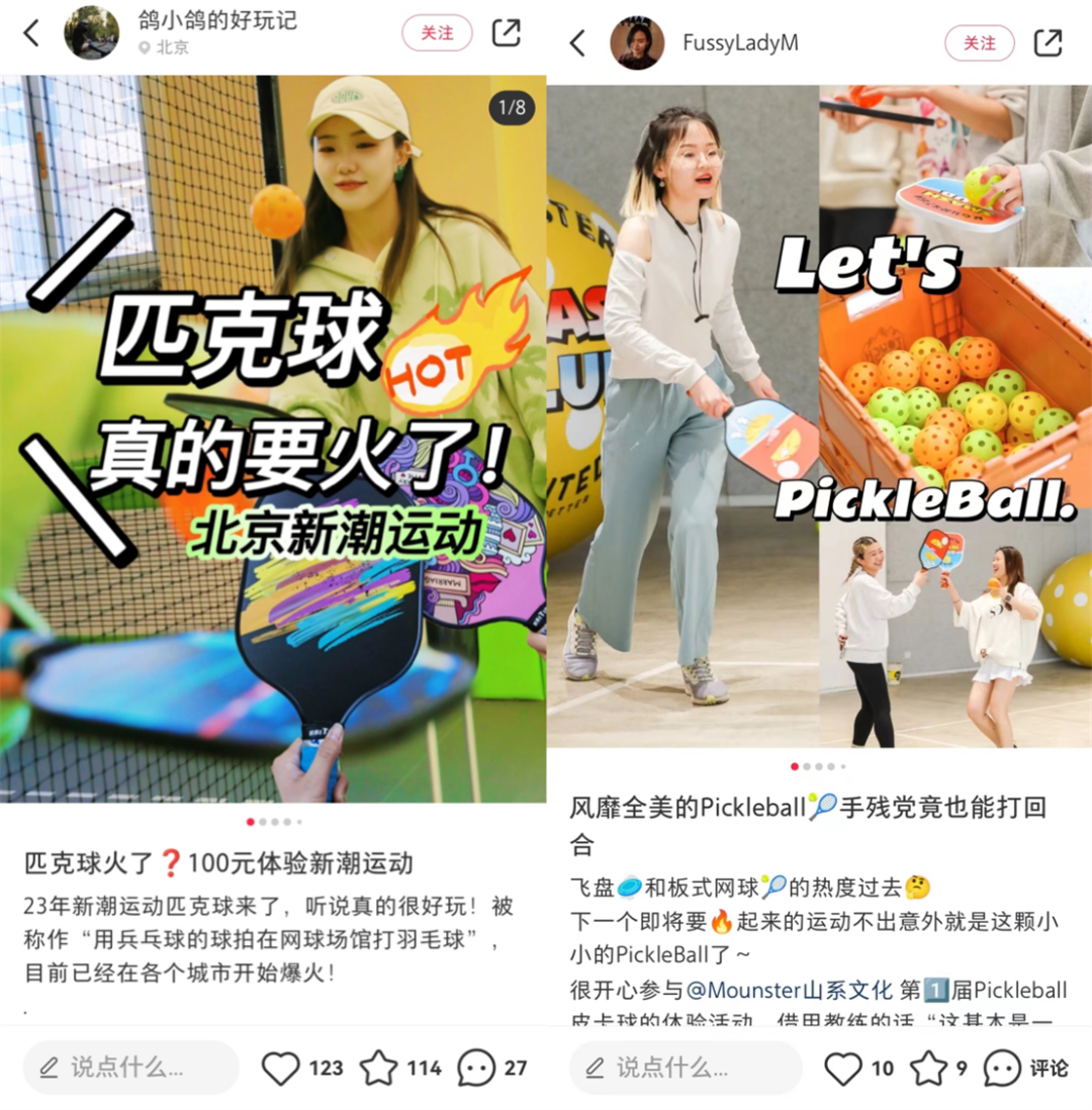 而去年分享飞盘打卡的网红用户,在今年盯上了匹克球等新的潮流运动。