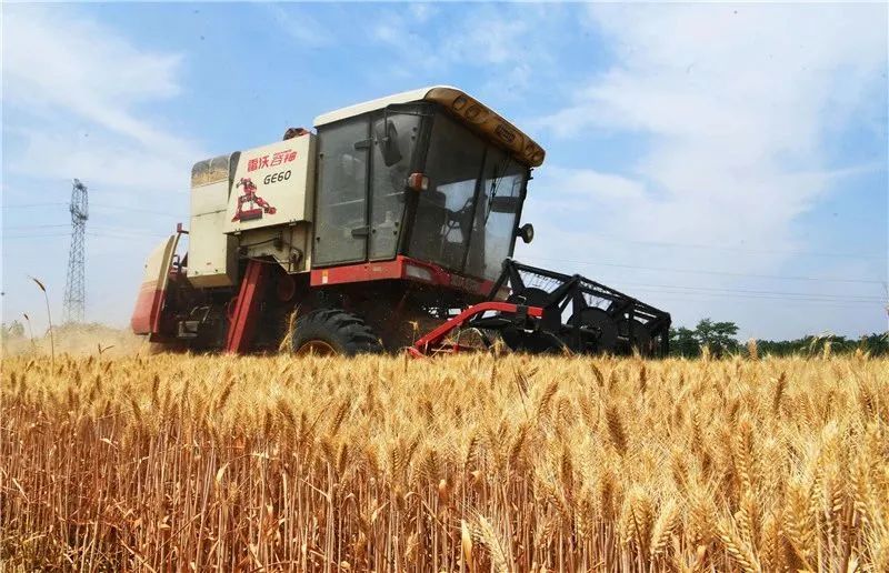 在涡阳县陈大镇张寨村,收割机正在田间作业。(资料图片) 张延林 摄