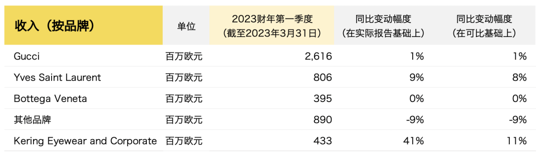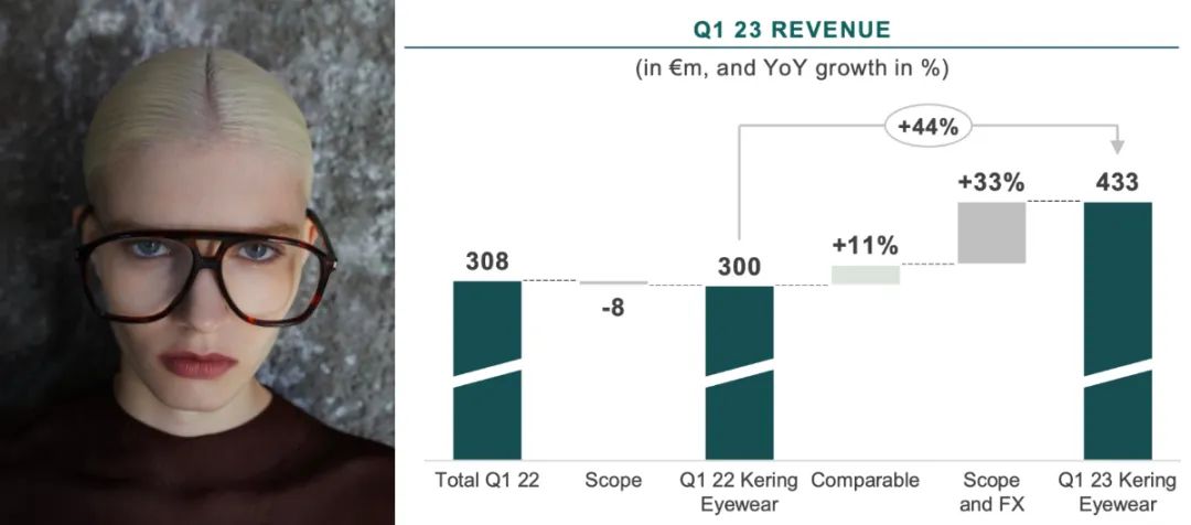 受旗下品牌强劲增长的推动,开云眼镜在2023年第一季度的收入同比大增41%至4.33亿欧元,在可比基础上增长11%。