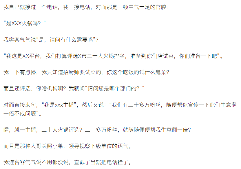 一位名为“心泥”的网友,在知乎上分享了自己作为商家,被探店达人“绑架”的经历: