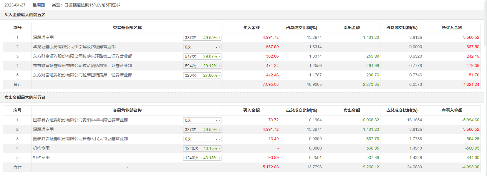 具体来看,机构买入93.89万元,卖出1098.84万元,合计净卖出1004.95万元。此外,国泰君安证券贵阳中华中路证券营业部、深股通专用分别卖出6068.32万元、1431.20万元;深股通专用、华龙证券伊宁解放路证券营业部分别买入4991.72万元、687.50万元。
