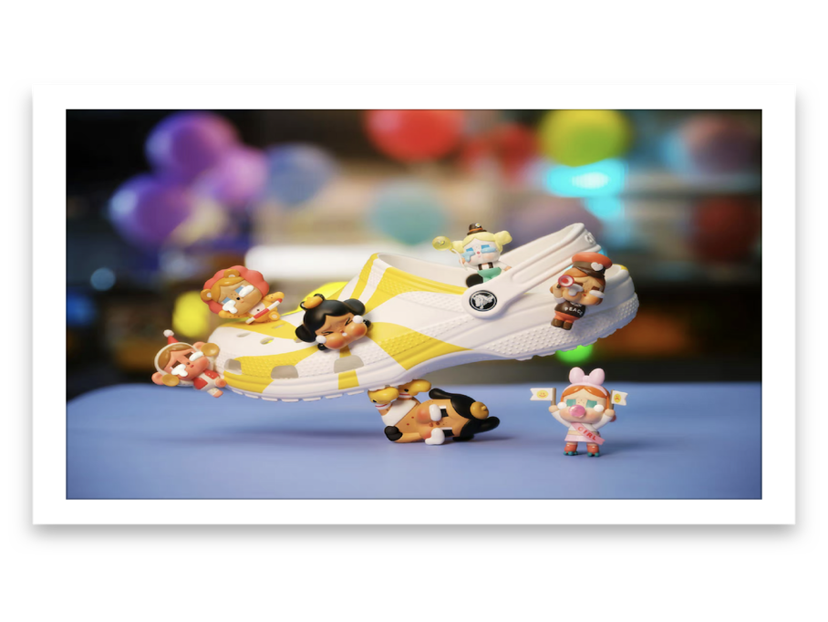 近日,泡泡玛特和洞洞鞋品牌CROCS合作推出「天生自在好玩到哭」联名系列, 以巡游系列为设计主题,将 CROCS标志性的智必星 DIY 玩法与盲盒结合,推出限定鞋款以及七款创意智必星盲盒套装,引发了一波“双厨狂喜”。