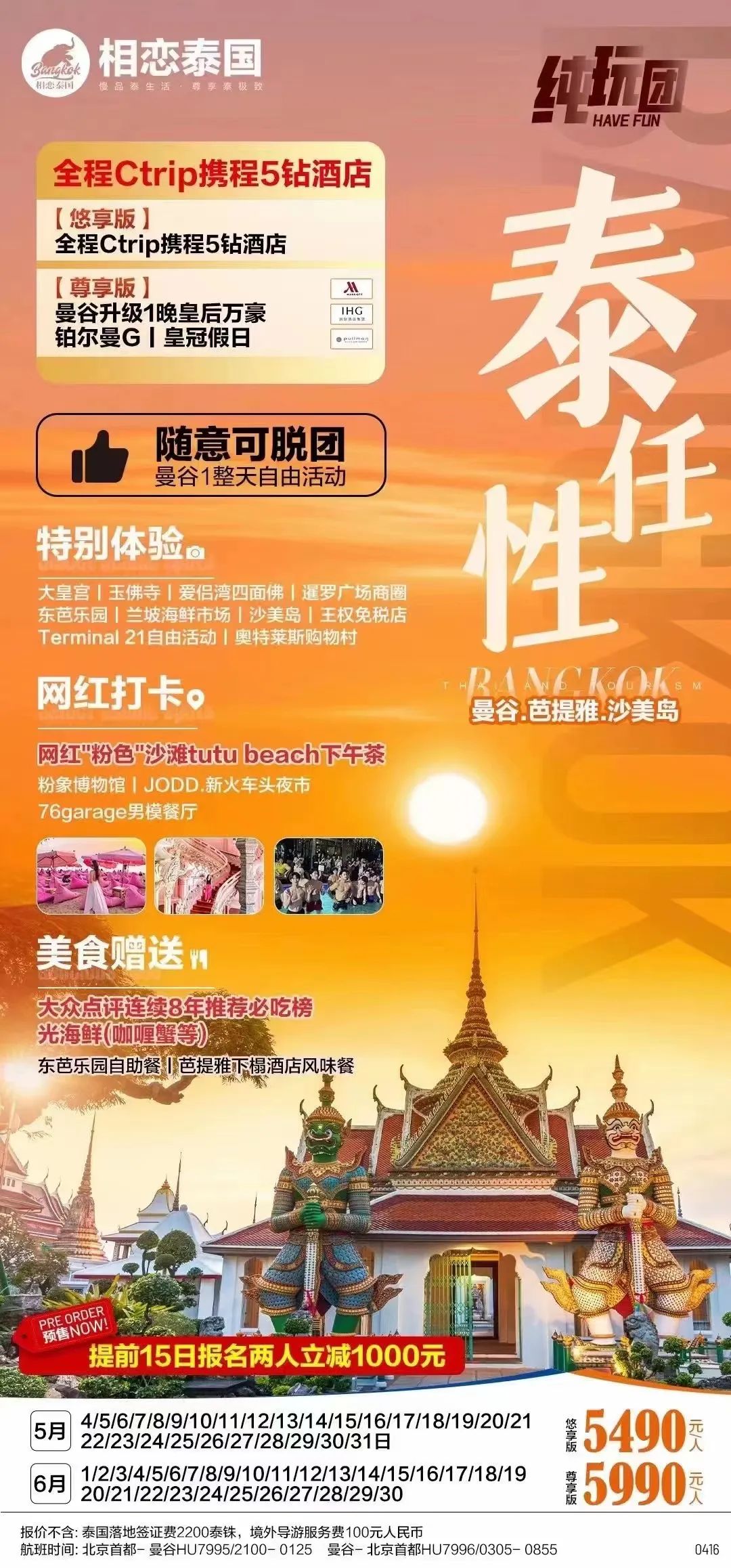 在路桦看来,泰国纯玩“曼芭沙”价格在4799元,5月随便做团就能出发。“但是自由行订张机票就要4000元。”
