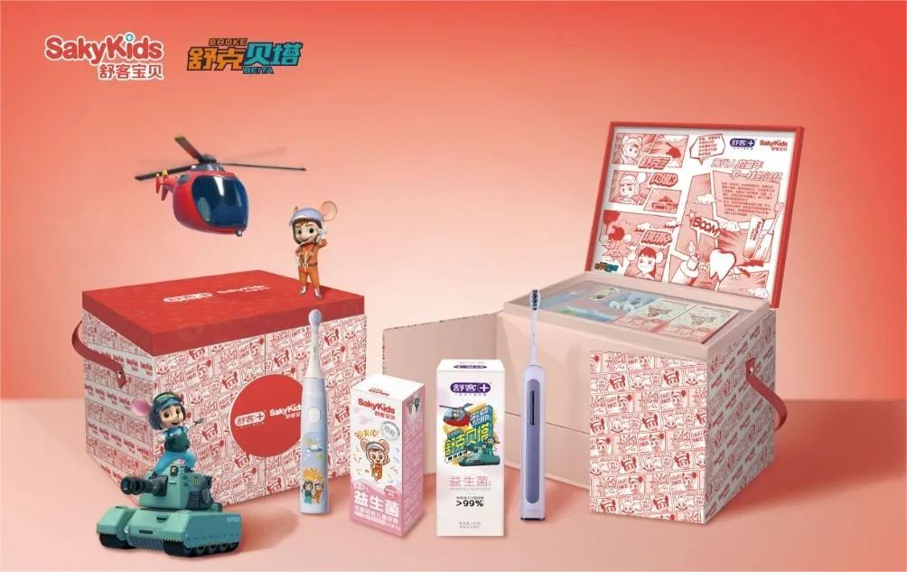 比如儿童口腔护理品牌舒客宝贝曾联名经典国漫IP舒克贝塔,不仅是小孩喜欢的卡通形象,同时经典国漫舒克贝塔也已为人父母的80、90后童年回忆,在这一别出心裁的联名形式的推动下,舒客宝贝频频出圈。