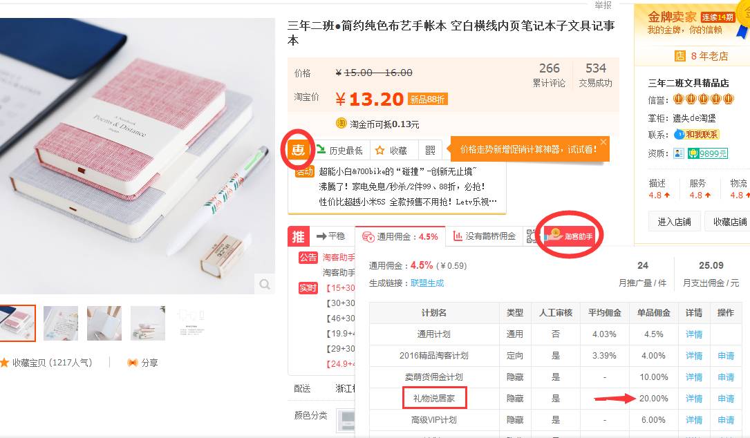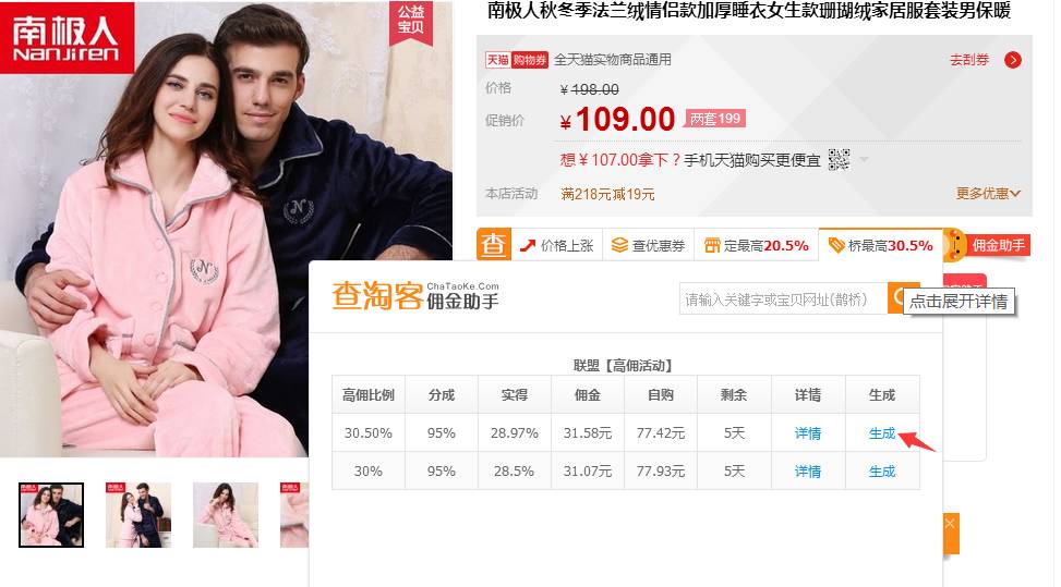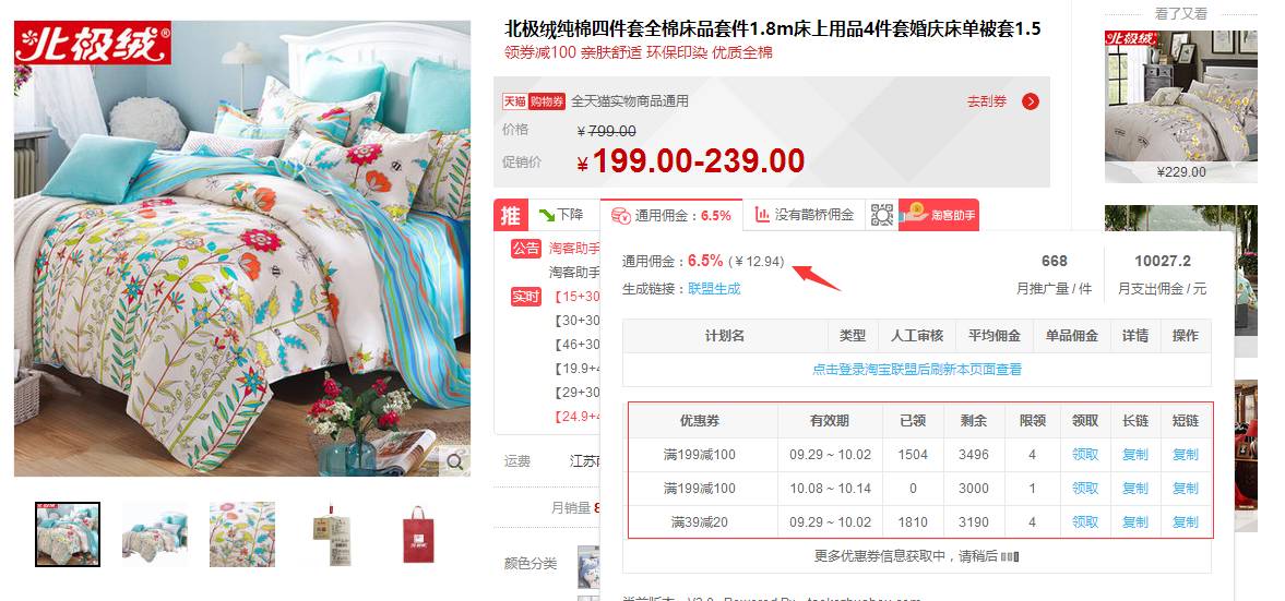 强调下几个动作,首先鹊桥以及定向计划要记得申请,计划申请通过了才会按照这个比例的给你返佣(大部分都会立即通过);第二个一定要记得领内部券。就做完这两个步,第一申请计划第二点领券,然后就可以去走自己链接购买了。