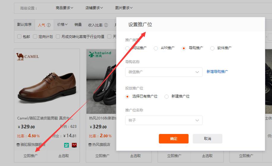 看到中意的商品,点击推广,然后系统跳出设置推广位。推广位什么的设置?凭产品逻辑傻瓜式的操作(或者自己百度一下),没有推广位的时候,联盟后台会自动提示你去设置推广位,按部就班设置就好了。设置好推广位就可以获取产品的推广链接。