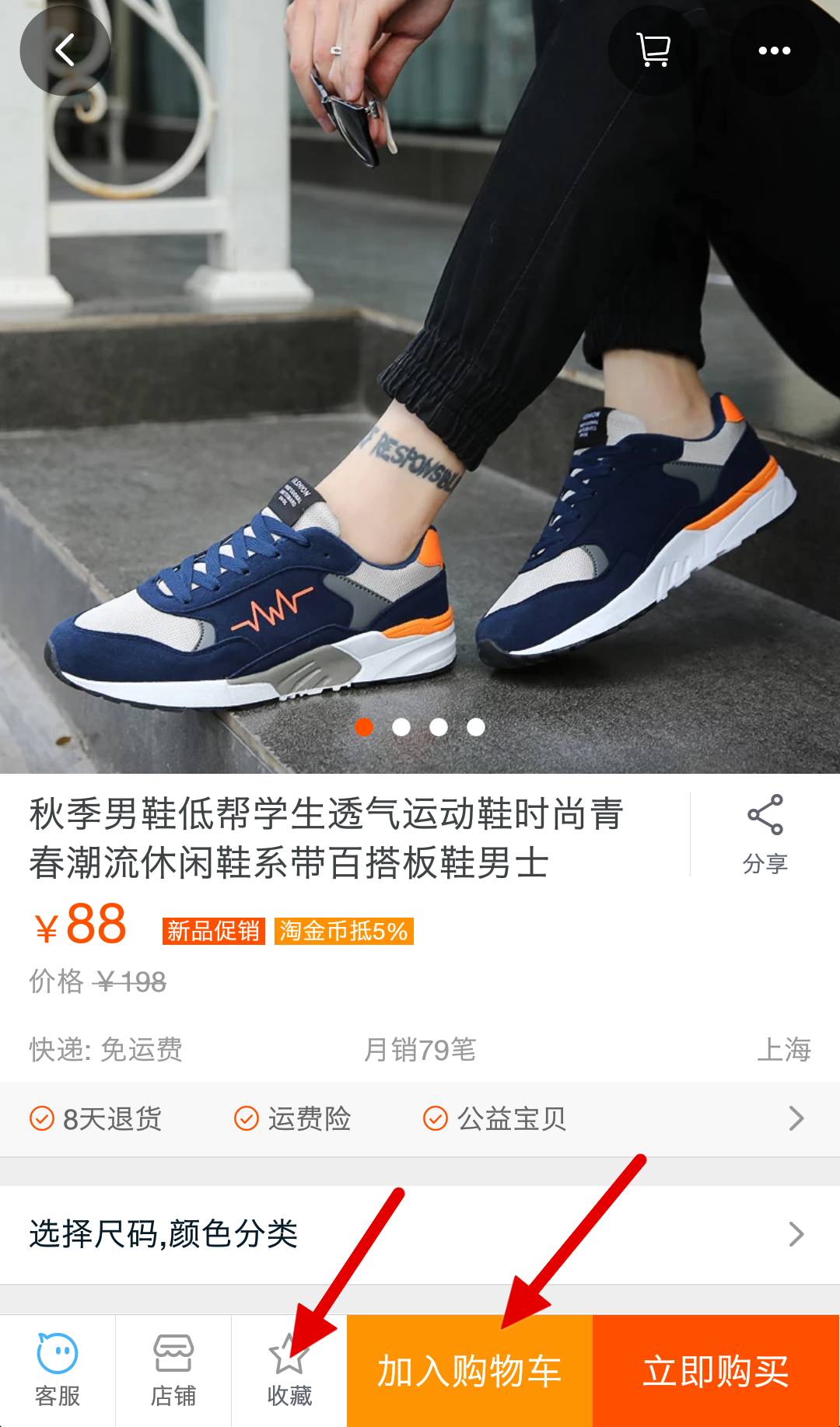 然后在淘宝或者天猫app里面正常浏览商品别急着付款,先加入收藏夹或加入购物车。