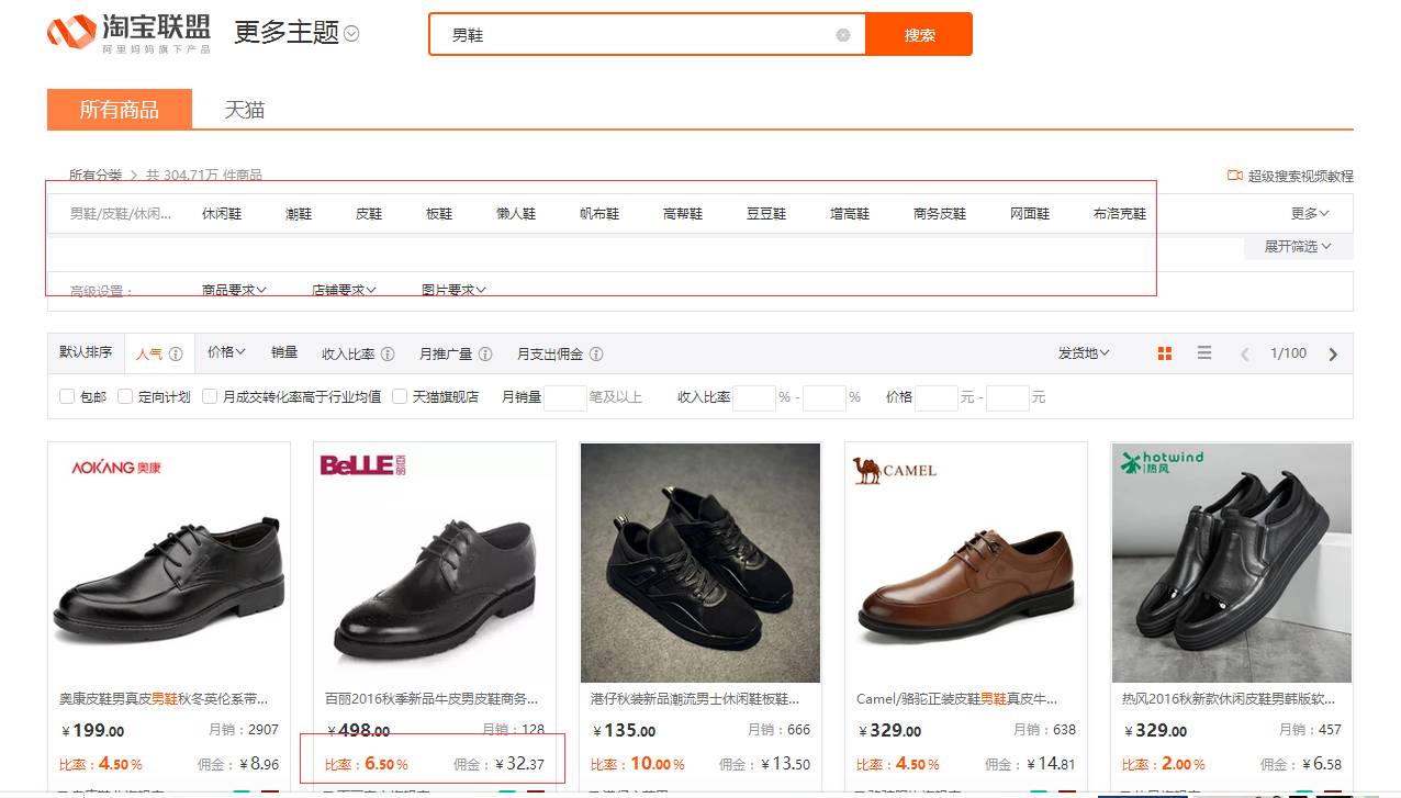 举个例子,你搜一下鞋子,突然间就会出现淘宝天猫购买东西的一个搜索引擎,但是淘宝和淘宝联盟里不一样的地方就是会显示佣金出来。佣金是啥意思呢?你可以理解为回扣。就是你买了这个,如果你自己去买,他就会把这钱返回到你的淘宝联盟账户。如果你把这个推广链接让别人买,这样你就可以拿佣金,就是你可以赚钱。