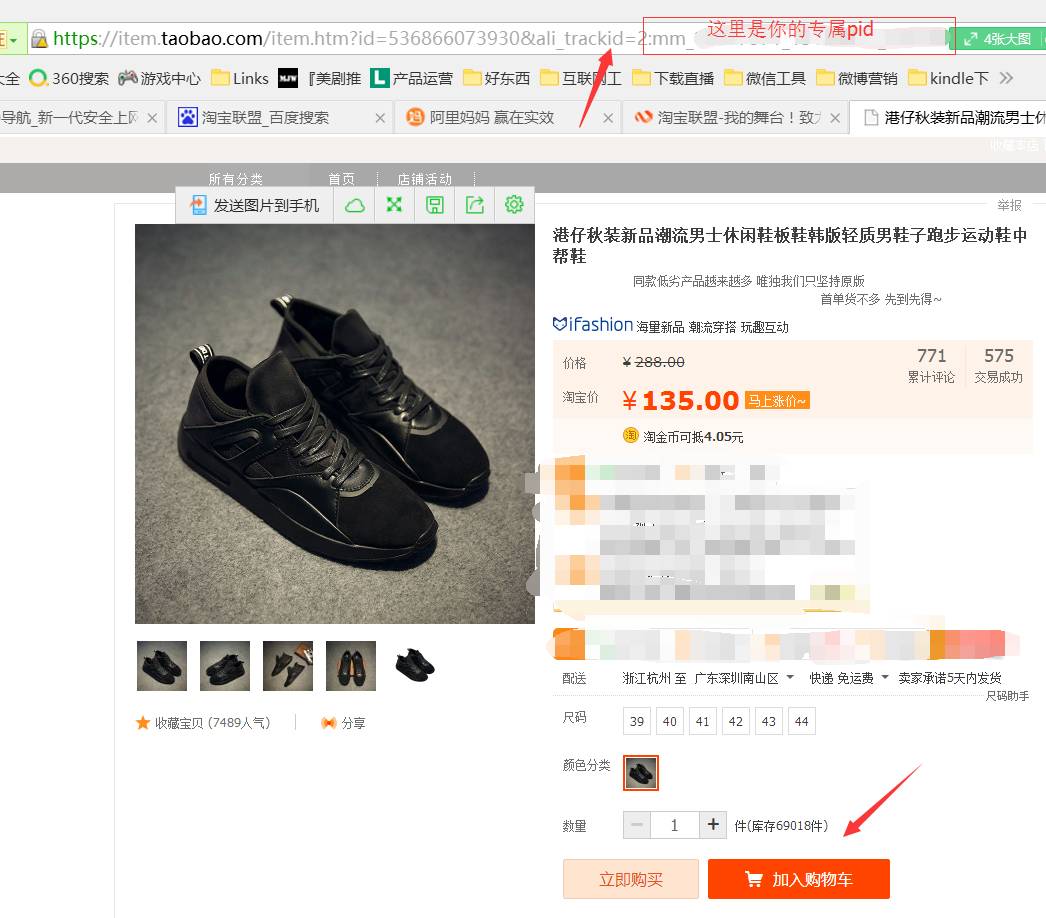 切记先申请,然后找到自己想买的单品,获取推广连接后记得在浏览器地址栏确认一下自己的pid。