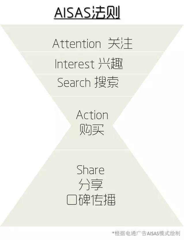 因为传统单向的购物行为,导致交易双方只存在买卖关系。并且交易行为完成以后,一般不会再维系这段弱关系。而以强用户粘度见长的社会化媒体,能使购买行为变得更可持续。我们可以用电通公司总结出来的AISAS模式来分析。