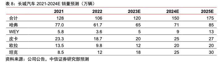 此外,随着燃油车市场不断萎缩,主力品牌哈弗的转型进程虽在提速,但长城再度在战略设计上出现失误。2022年8月,长城将搭载最新柠檬混动DHT技术平台的哈弗H6 PHEV、HEV版本均与燃油车并网销售。对此,中信证券认为,这一决策和吉利帝豪L雷神版是同样的营销策略误判。