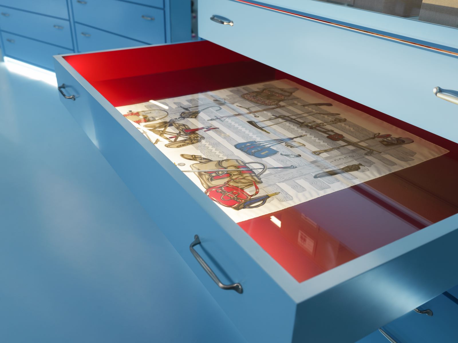 除了常见的展示橱窗,陈列柜下方的可拉伸抽屉同样被用于展出藏品。由于观众往往难以提前得知抽屉里的内容,设置该环节也丰富了展览的趣味性。