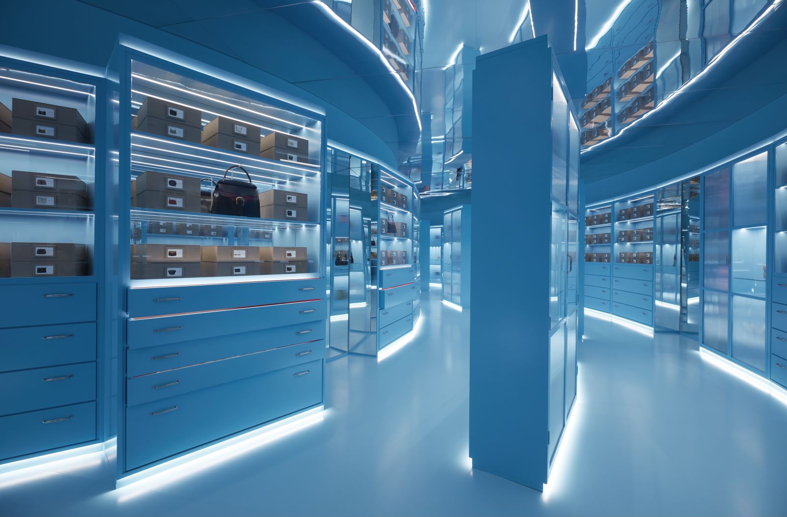 当然也不止成衣,许多能够展示古驰已然成为奢侈生活方式品牌的细节物件也被“收纳”到装置内。