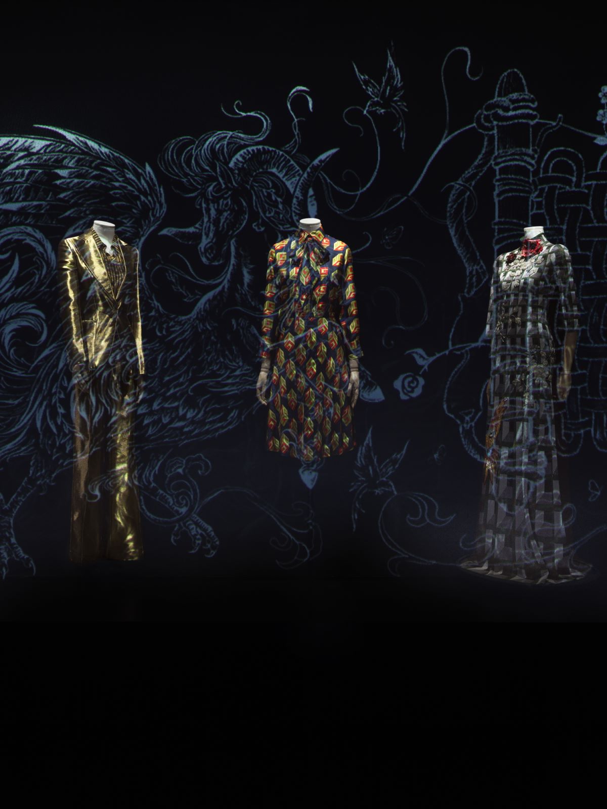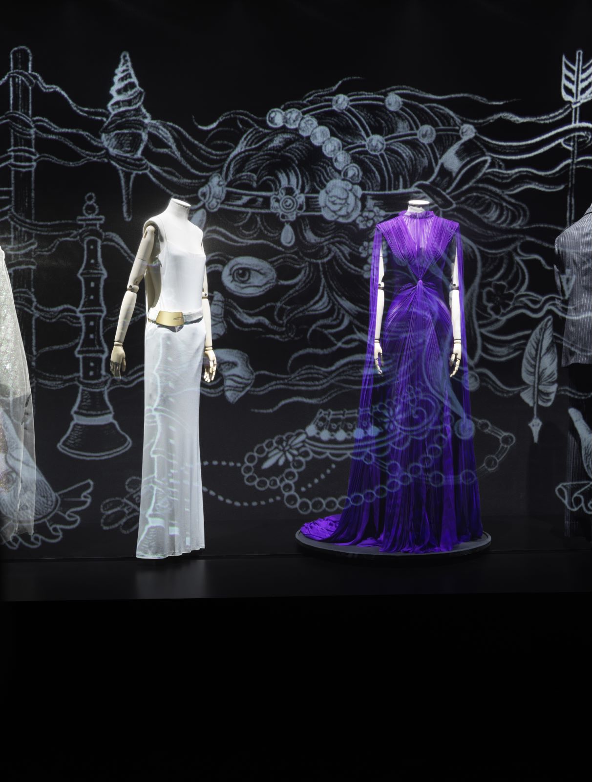 参观者即可以看到由汤姆·福特2001年设计的黑色皮革紧身胸衣,弗里达·贾娜妮在2006年创作的金色晚礼服,也能观赏到由于亚力山卓·米开理创作的的绣有蕾丝、珍珠与串珠的连衣裙。