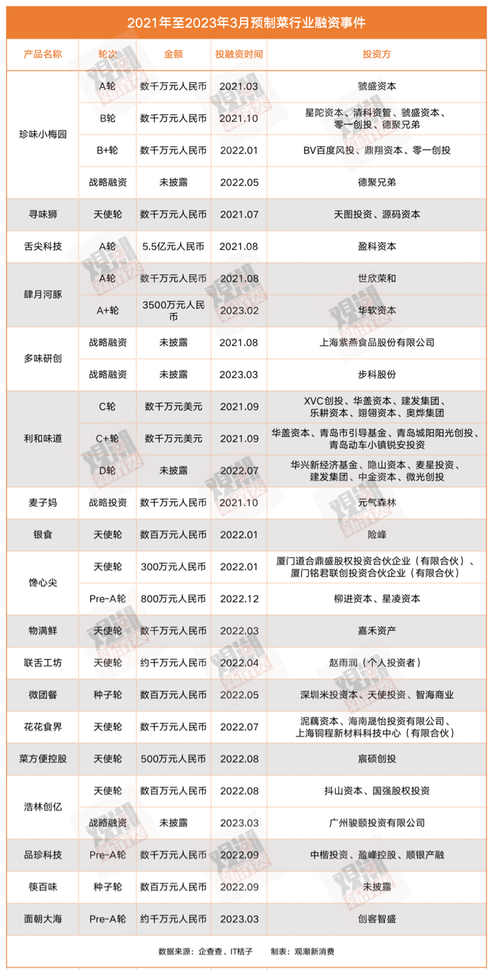 以2019年成立的预制菜品牌珍味小梅园为例,其在2022年1月和5月连续两度融资。截至2022年年底,珍味小梅园共已完成6轮融资。