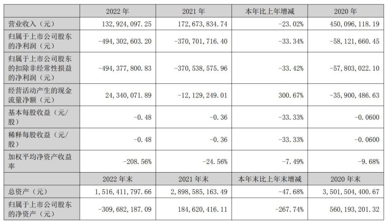 *ST弘高的主营业务包括工程设计、景观设计、家具设计、工艺美术品设计和建筑装修装饰工程专业承包等。2022年,*ST弘高实现营业收入1.33亿元,比上年收入减少了23.02%;实现归属于上市公司股东的净利润为-4.94亿元,不但比上年亏损扩大33.34%,而且亏损额也远远高于同一年度的营业收入。