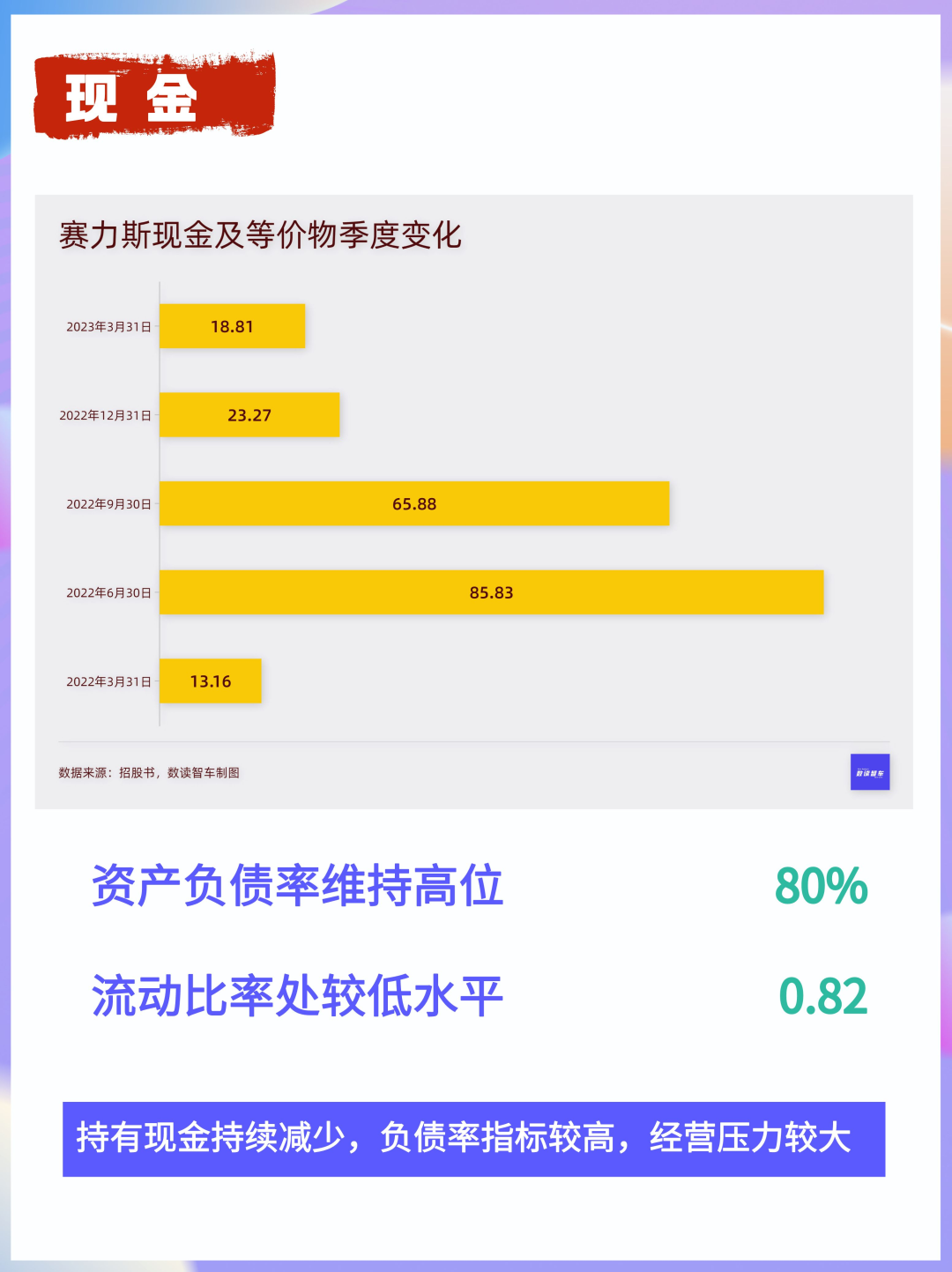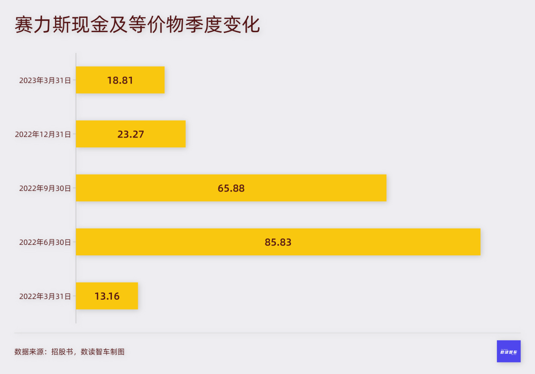 截至今年一季度末,赛力斯持有现金及现金等价物余额为18.81亿,比期初减少4.47亿,去年赛力斯刚刚落地71.3亿元定增,如今已经快要花完。