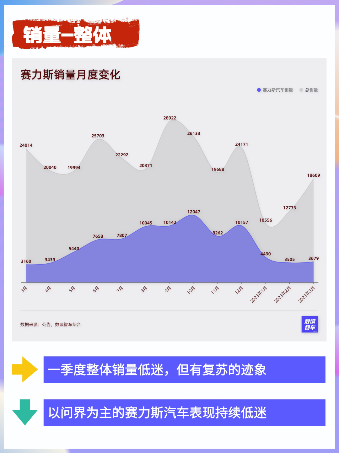但今年以来,问界的交付突然遇到挫折,原本这并不是问界一家的问题,多数车型都遭遇了疲软,可问界在此后两个月继续低迷,一季度,问界(官方公告称之为赛力斯汽车)的累计销量只有11659辆。
