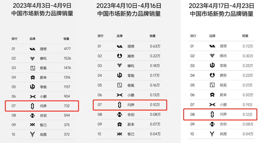 问界不像其他受到冲击的厂商那样有低价车型来支撑销量,销量受到的冲击非常明显。