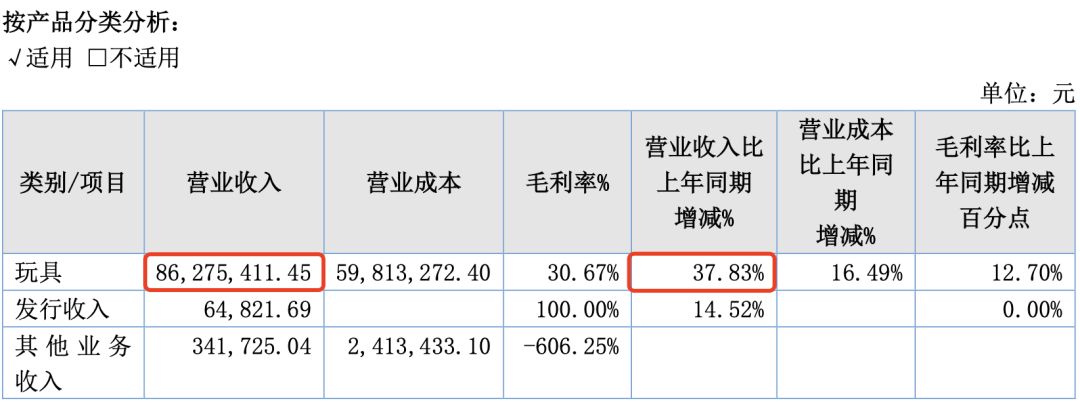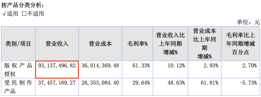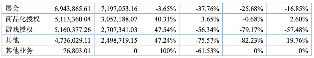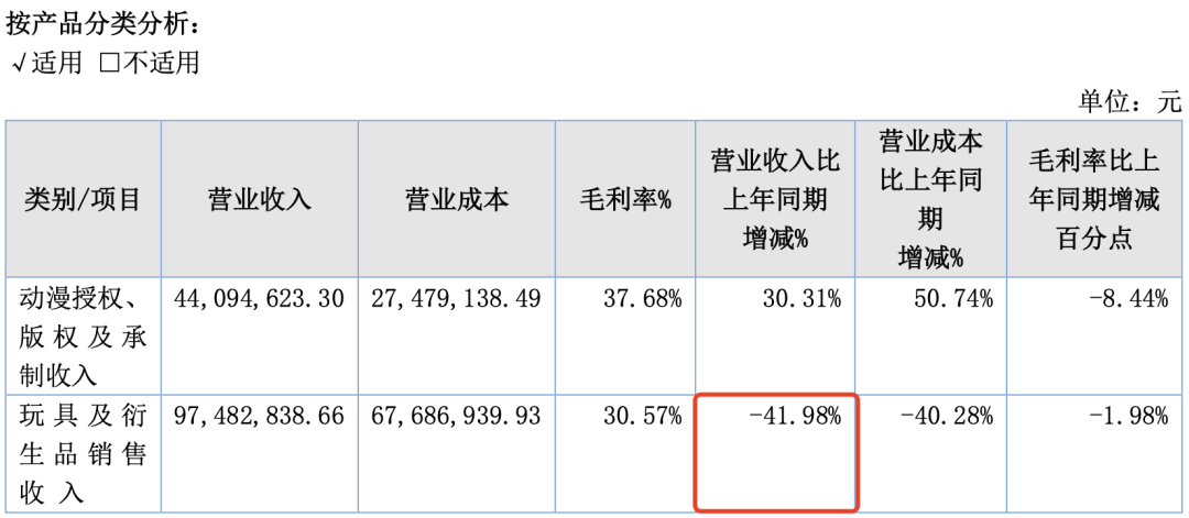 其中,动漫授权、版权及承制收入占比为31.15%,较上期增加 30.31%。玩具及衍生品销售收入占比为68.85%,较上期减少 41.98%。
