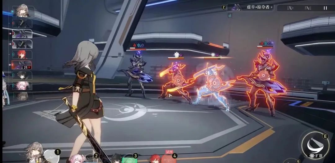 这套简洁的玩法实在谈不上有可供挖掘研究的策略深度。“大招插队”和“弱点击破”加快了战斗节奏,但这只是现代回合制的“标配”,玩家可能在新手关后就对“大招动画不能跳过”产生厌烦。《崩铁》还加入了进入回合前就能操作的遇敌偷袭机制,比较新颖的是不同角色的“偷袭”能力各自不同,但这也只是在《女神异闻录5》基础上所做的“微创新”。