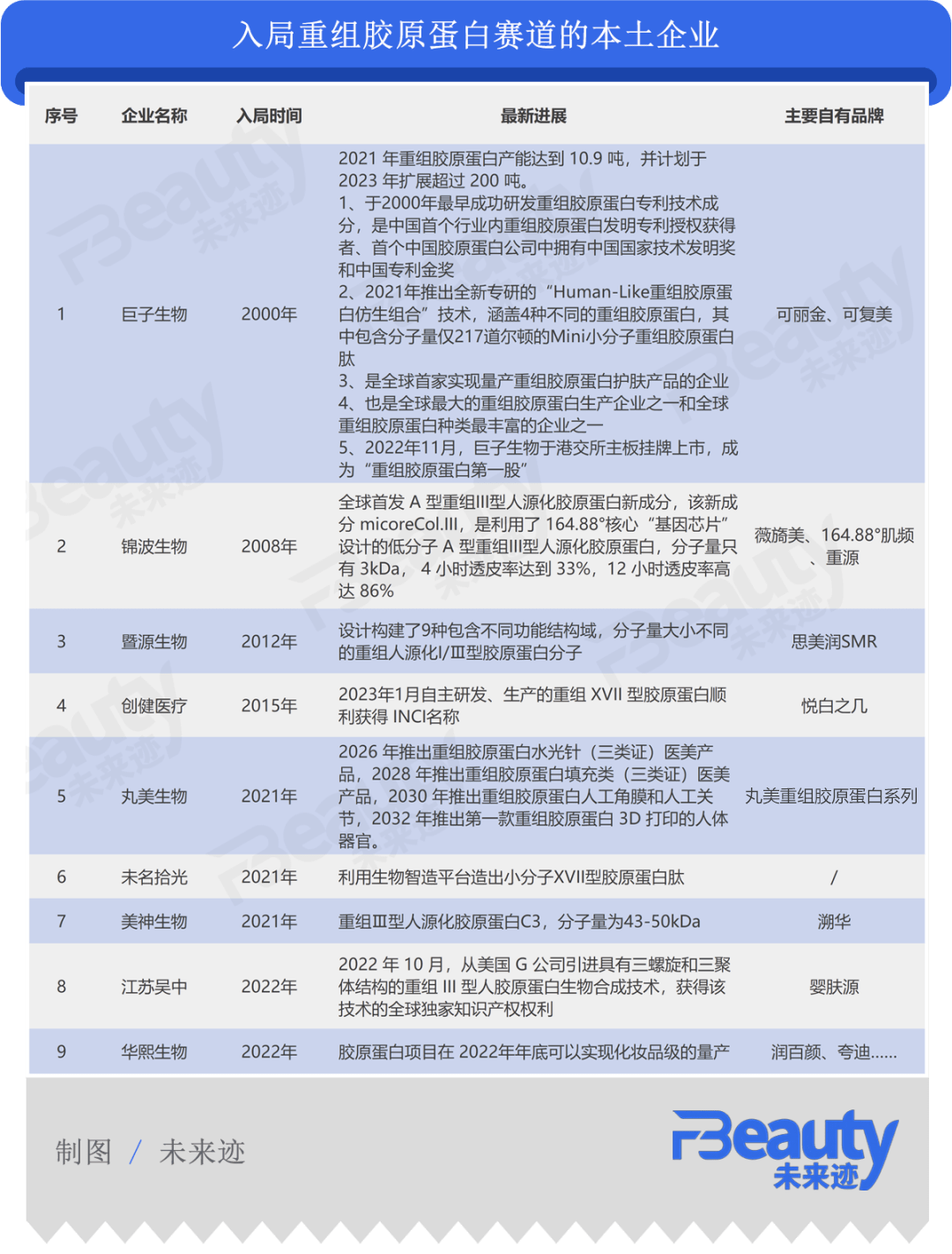 巨子生物的重组胶原蛋白、稀有人参皂苷两款核心产品也可以在可复美等品牌应用上形成独有的多成分优势,而中科欣扬等企业也在向多成分搭配的方向拓展技术,在市场竞争中创造更多组合优势。
