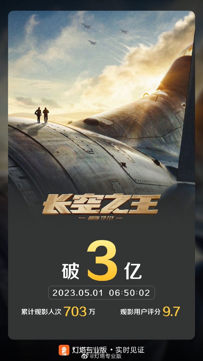 据灯塔专业版实时数据,截至5月1日6时50分,影片《长空之王》实时票房突破3亿。
