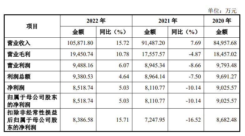 招股书显示,2020年-2022年,鲜美来营收逐年增长,从8.5亿到10.59亿,但净利润不升反降,从9025万降至8518万。对此,鲜美来归咎于疫情反复对下游商超及连锁餐饮企业的正常营业带来了影响,导致销售规模降低。
