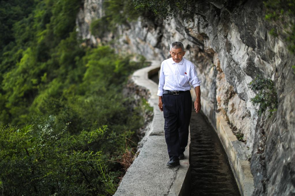 他带领村民,历时30余年,在悬崖绝壁上开凿出一条主渠长7200米、支渠长2200米的“生命渠”;他用实干兑现誓言,为改善山区群众用水条件、实现脱贫致富作出突出贡献;他一心为民、埋头苦干、百折不挠……