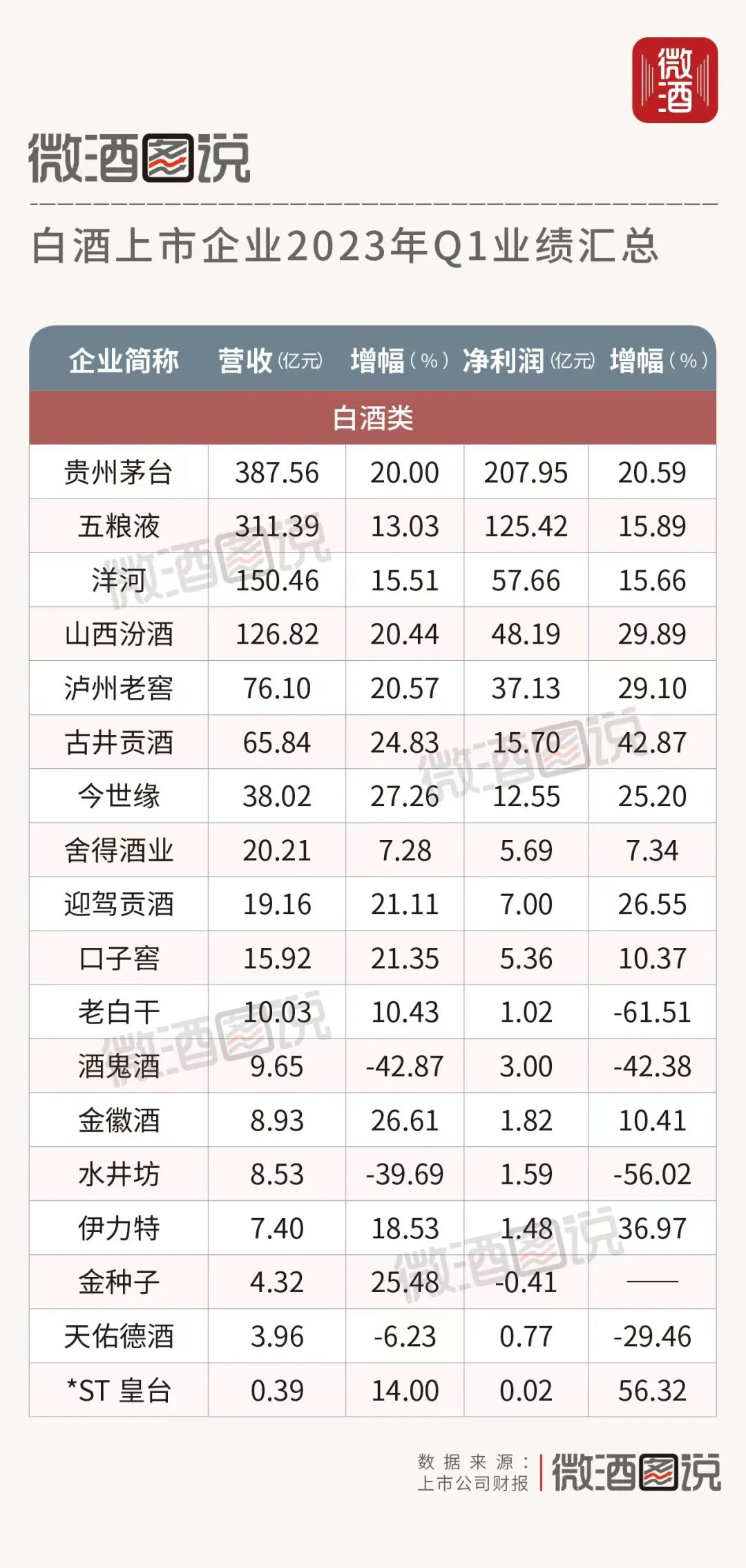 此前,中国酒业协会对外披露,2022年规上白酒企业完成销售收入6626.5亿元,而19家上市酒企在2022年的总营收高达3482.28 ,占据着大半壁江山。由此可见,上市酒企披露的数据代表着一定的市场风向,今年一季度的数据则表明酒业仍维持弱复苏的态势。