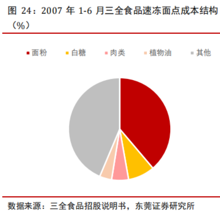 三全食品的速冻面点中,面粉占比最高,大约是39%;