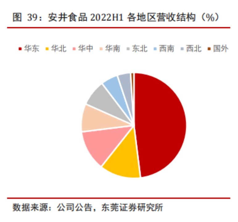 2022年上半年,安井在华东市场营收占比是48.01%,华北和华中地区的营收是12.66%和12.39%。