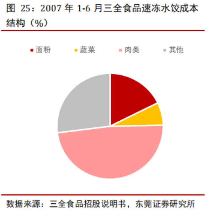 像是速冻水饺,不难猜到肯定是肉类占比最高了,是48%。