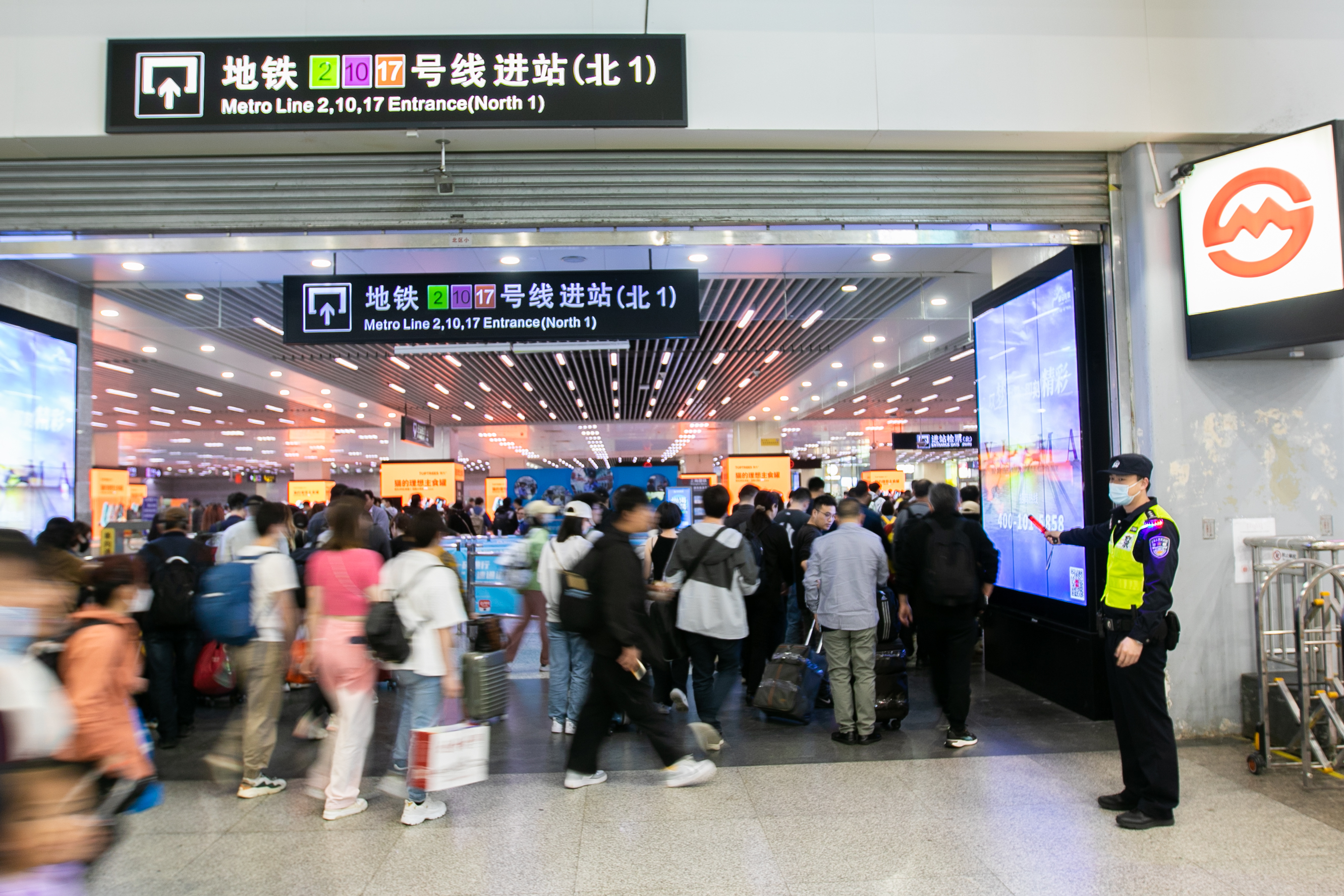 记者从上海市公安局轨交总队获悉,5月3日,轨交虹桥火车站站迎来返程高峰,预计单日轨道进站客流可超20万人次。