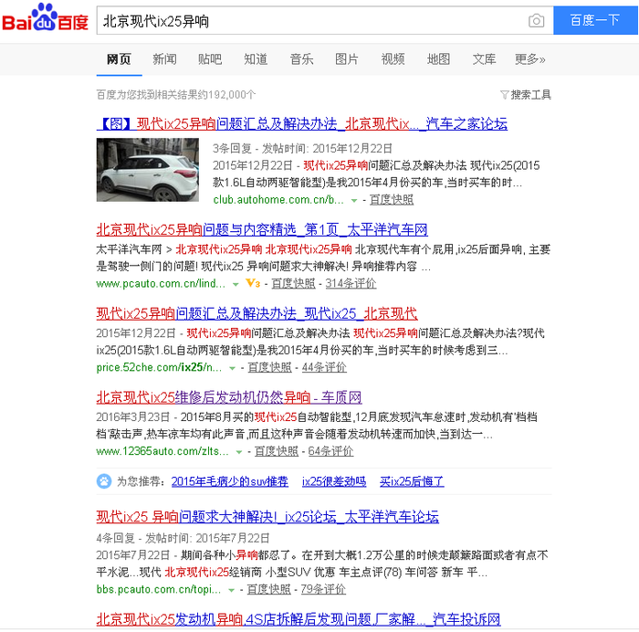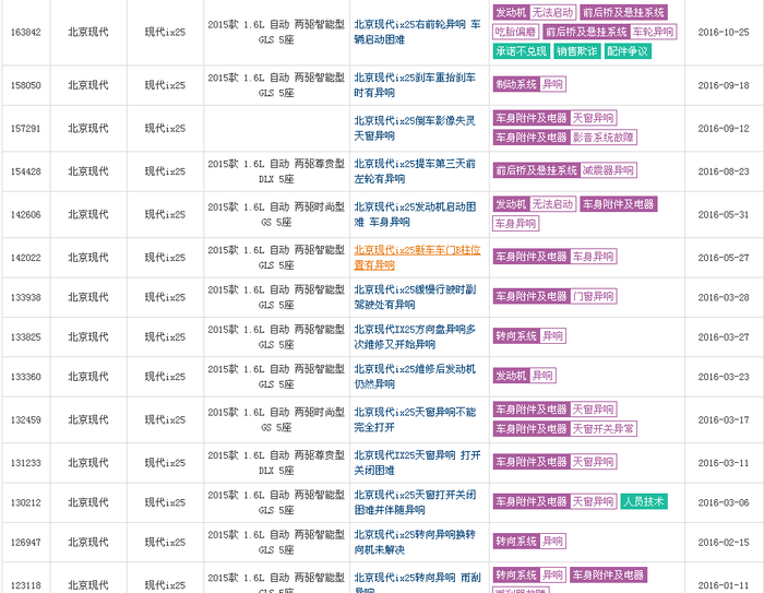 根据懂车帝调查大数据显示,在车质网上搜索关于“ix25”投诉,发现其异响的问题也是层出不穷(见下图)。