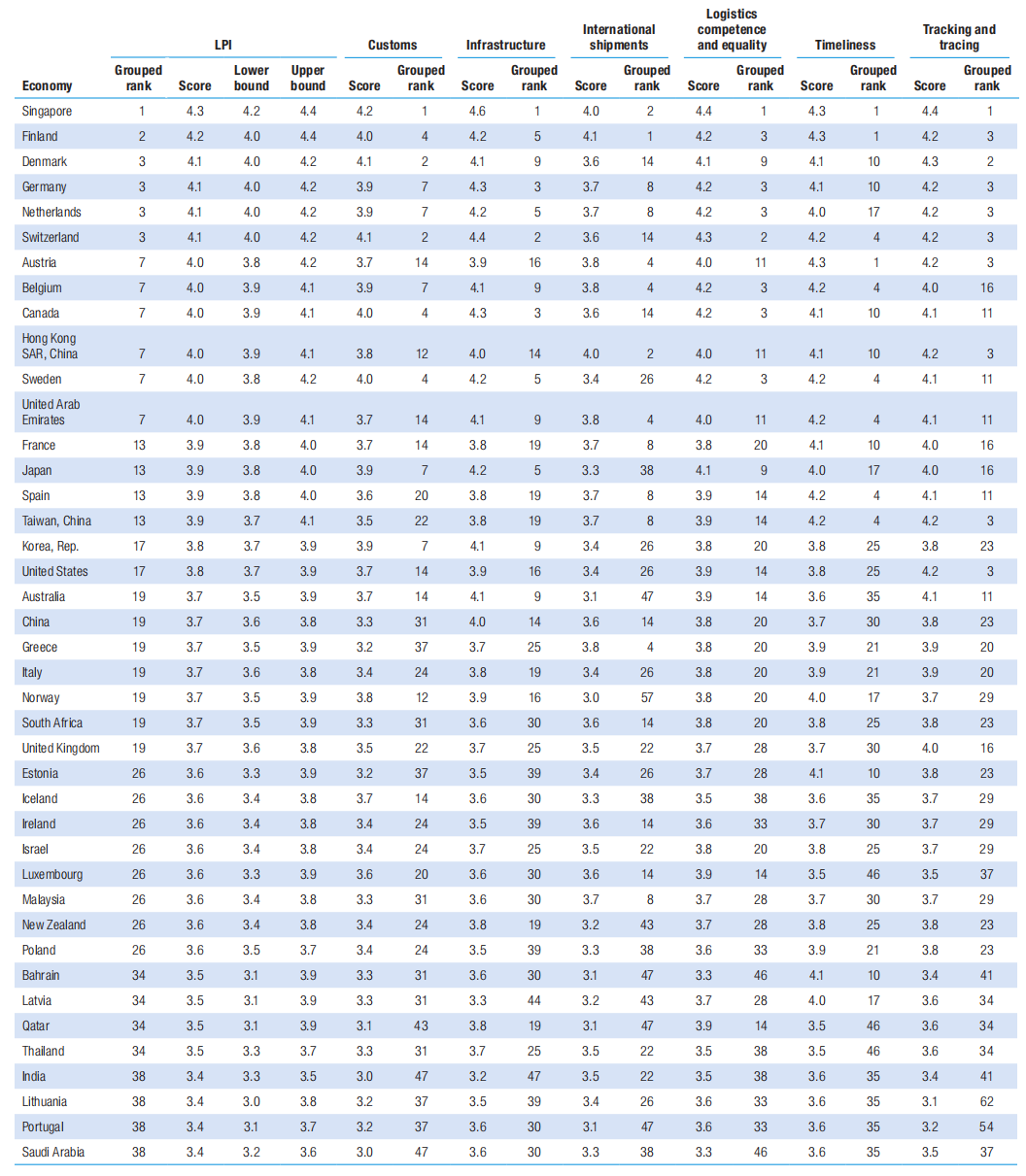 世界银行发布的《2023年物流绩效指数报告》显示,巴西以3.2的物流绩效指数(LPI)排在全球第51位,相比之下,中国(大陆)以3.7排在第20位,美国以3.8排在第18位