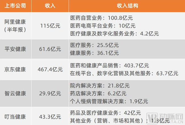 (注:因财年划分差异,阿里健康为2022年中期报告,其余为2022年度报告)