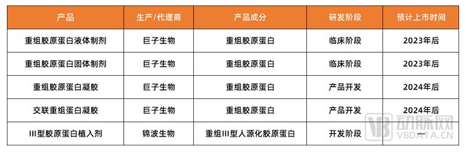 图2.中国部分胶原蛋白注射填充在研产品(数据来源:巨子生物招股书、锦波生物招股书)