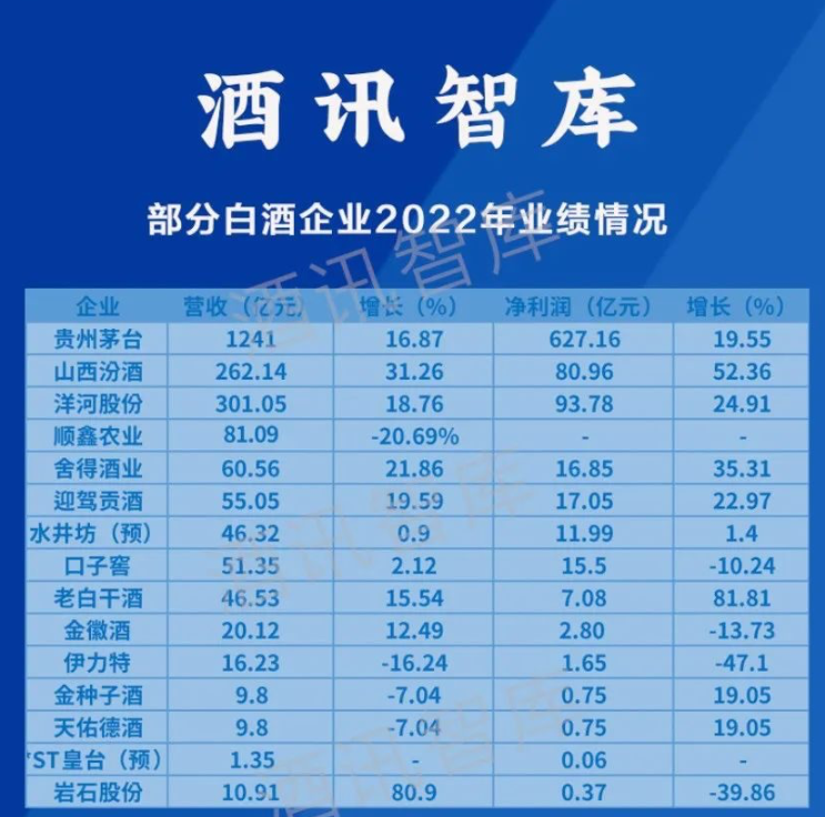 当然,高端品牌下沉的B面,是下沉市场消费力爆发所带动的次高端成长机会。参照已发布的上市白酒企业财报来看,类如山西汾酒、舍得酒业、洋河股份2022年的业绩成长都在整个板块的前列,其中,营收增长分别为31.26%、21.86%、18.76%,净利润增长分别为52.36%、35.31%、24.91%。