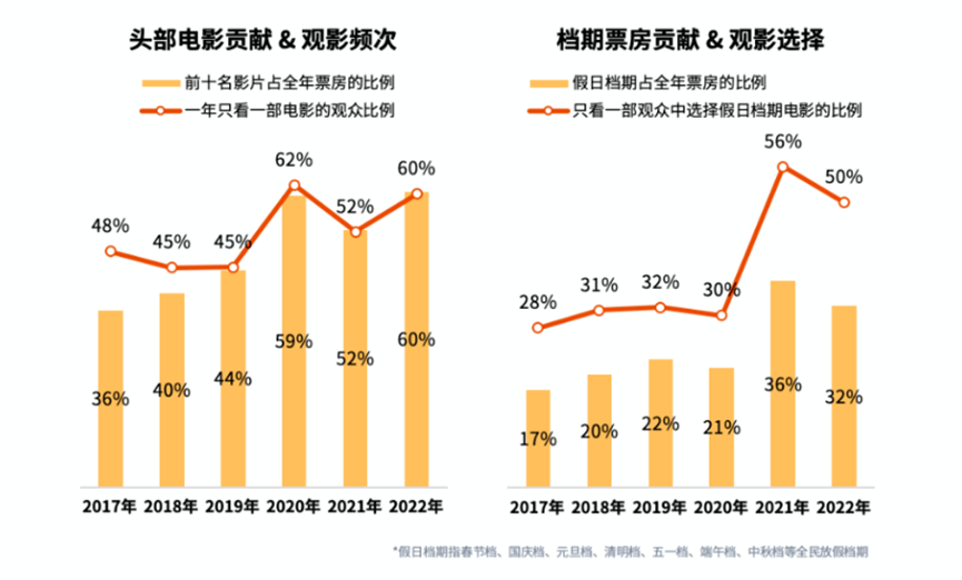 高口碑国产片扎堆冷档期,到了节假日档“期却又几乎失踪,结局就是票房与观众评价的双重失利。要知道,节假日档期是许多电影市场的增量观众进入影院的唯一机会,在2022年,只看一部影片的观众中有50%选择的是假日档期电影。如果这种现象长此以往地存在下去,电影市场在增量观众眼中的印象将愈发岌岌可危。