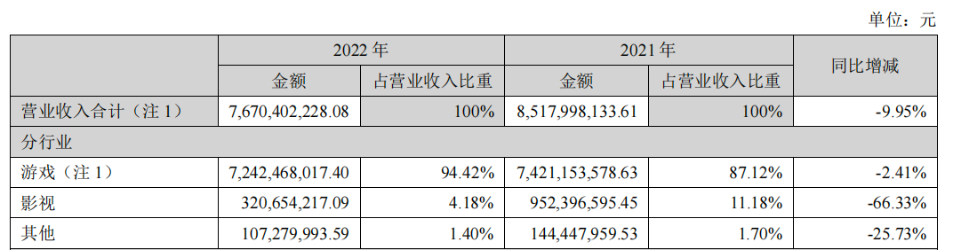 年报显示,公司2022年的总营收为76.7亿,Q1实现营业收入19.04亿元,2022年扣非净利润6.91亿元。游戏业务仍旧占大头,影视业务在“降本增效”的关键词下减量提质,营收成本大幅减少。