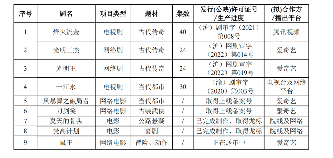 尽管如此,公司2022年上线的《昔有琉璃瓦》《摇滚狂花》等剧集中,高口碑作品不在少数。