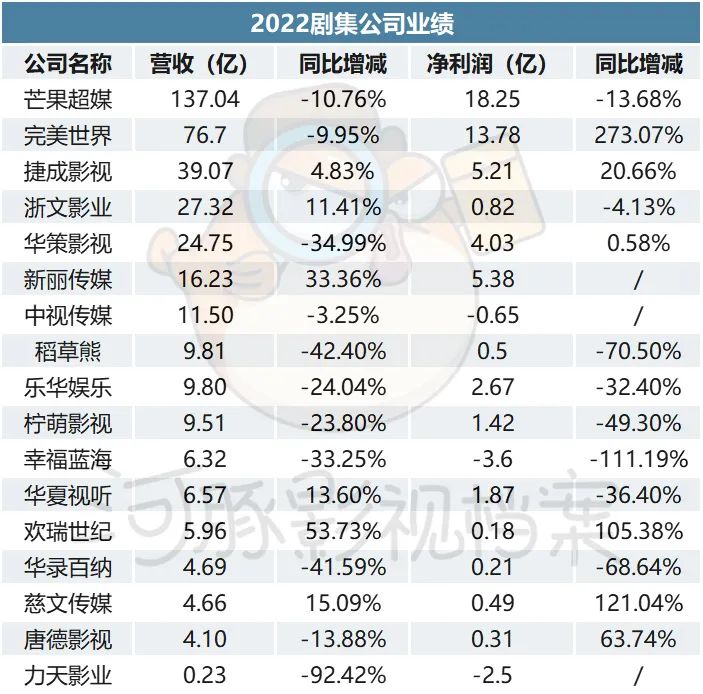 娱乐资本论梳理了17家对剧集行业影响深远的公司的2022年年报,试图了解在“增效元年”的新局面下,谁赢得了先手。